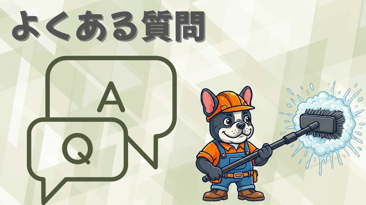 私たちが使用するバイオ洗剤は環境に配慮した安全なものですが、施工中にはプールのような「かすかな塩素の匂い」がすることがあります。しかし、最後にお水でしっかりと洗い流しますので、匂いがいつまでも残ることはありません。 洗浄後はスッキリと清潔な状態になりますので、ペットを飼っているご家庭もご安心ください。