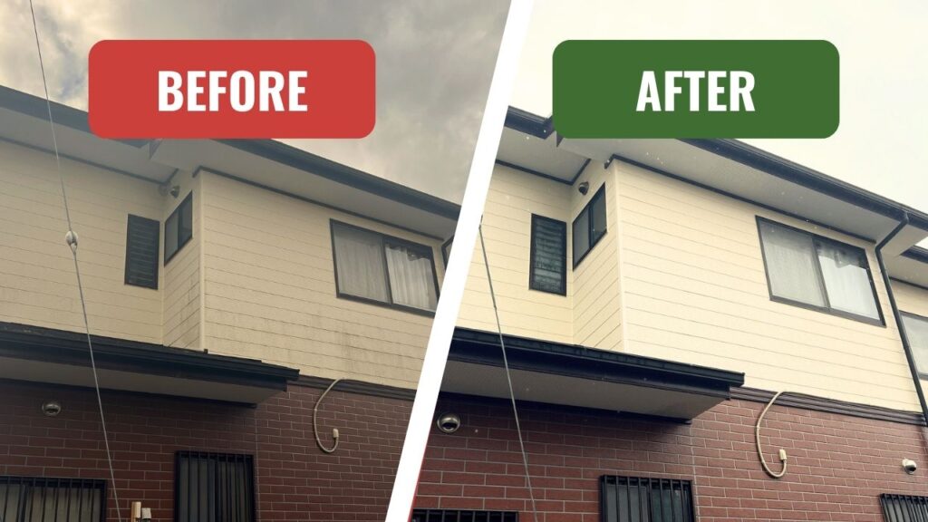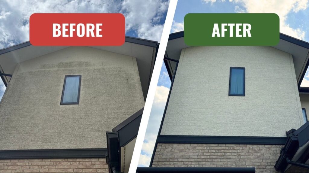「マジックウォッシュ」で、長年のコケ汚れもスッキリ。お家を傷めないのが自慢です。